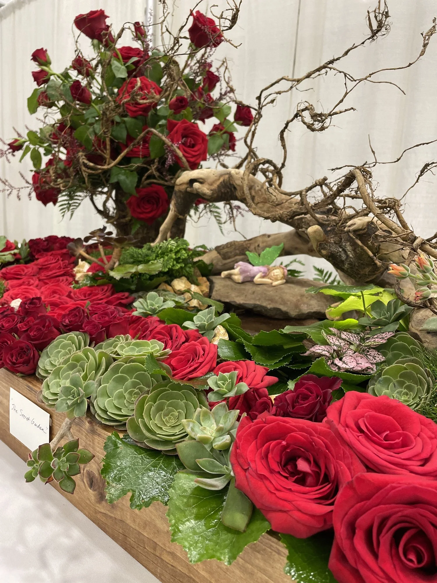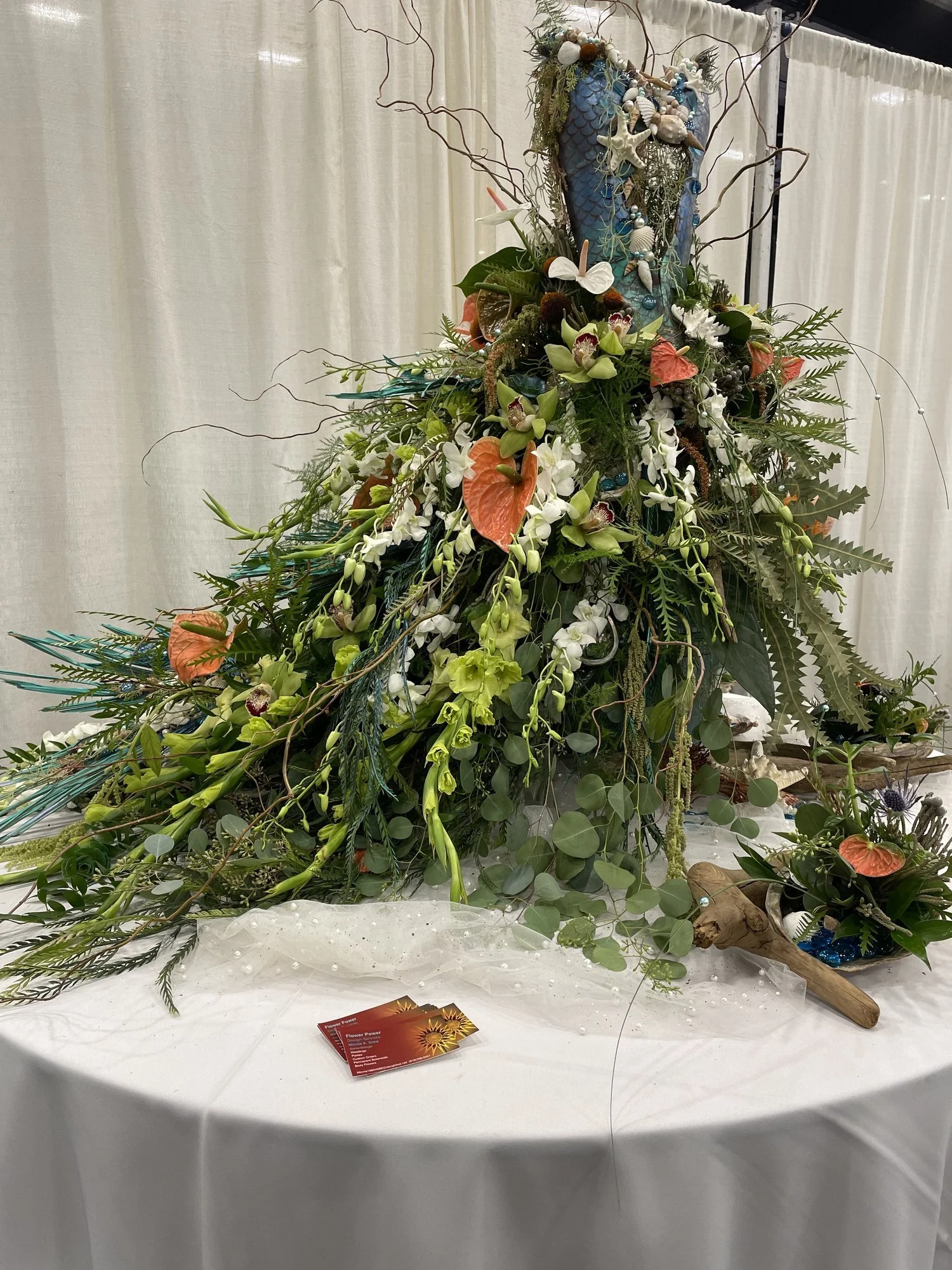 All floral displays will be set on white draped tables that we will provide as well as white back drapes. The tables are 5’ in diameter. If you have a tall display, we can forgo the tables and have the display on the floor. Keep in mind the width cannot exceed 5’. Please keep in mind in picking out your plant/floral material that it should last the duration of the 3 day show. Staff can water or check the water level/saturation of your display per your instructions.
