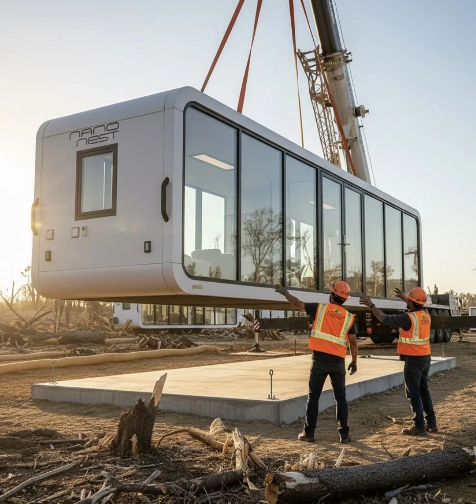 “With NanoNests, you can experience the full potential of living while effortlessly sidestepping the hassles of on-site construction. Our turnkey NanoNests solutions are meticulously crafted for you, ensuring a seamless setup process without any delays. The professional construction, paired with convenient delivery, grants you the freedom to relish a lifestyle of ease and comfort. So make your dream home a reality without the usual headaches, as we take care of the details while you embrace the art of hassle-free living.”